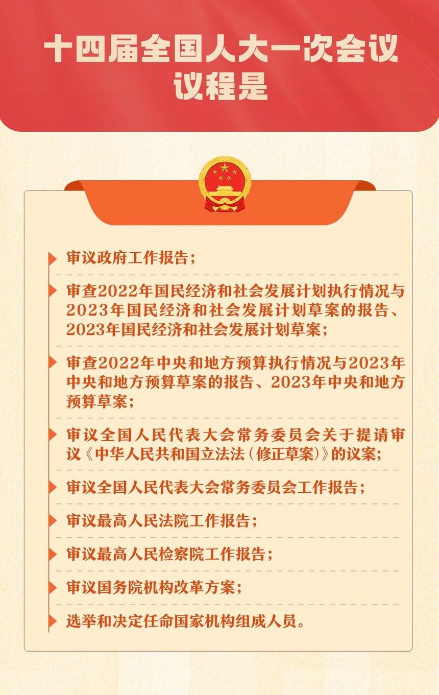 两会时间已开启!关于全国两会,你了解多少?代表、委员是如何产生的?议案、提案等表述该如何区分?作为在全面贯彻落实党的二十大精神开局之年召开的重要会议,今年的两会又有哪些议程?看图↓↓↓一起学习两会知识。