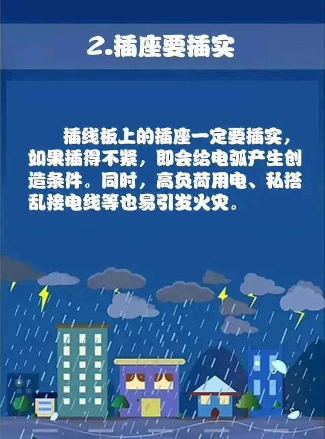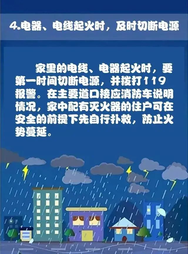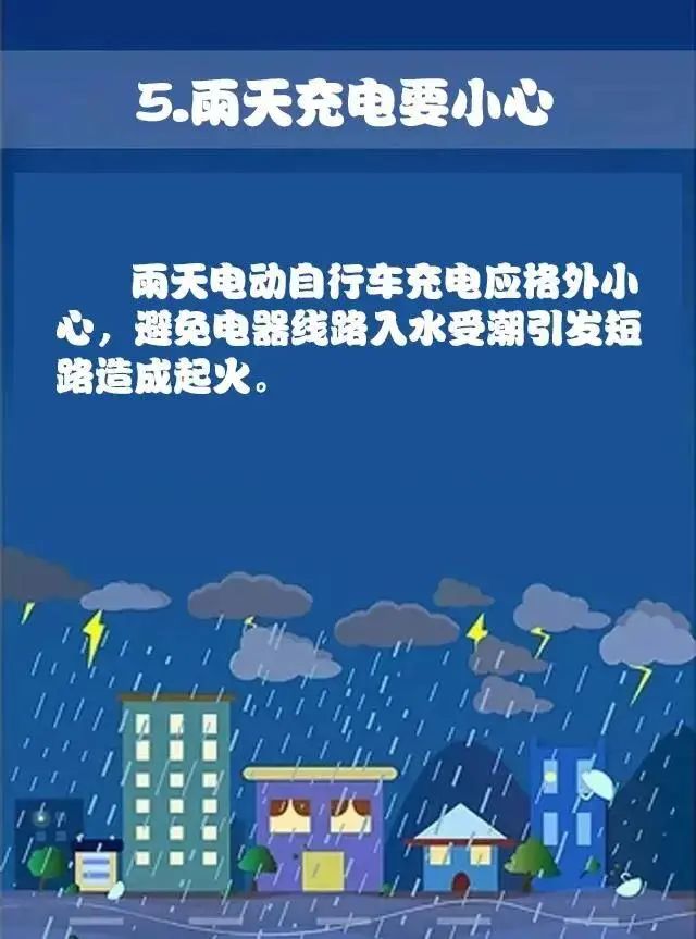 连续降雨,雨天消防安全怎么做?连续的降雨 极易引发漏电、电器短路起火等事故 雨天消防安全怎么做? 跟着小编一起学习吧! 下雨天火灾发生的几率会更高 火灾发生的危险系数也会更大 是不是万万没想到啊? 检查电器设备及线路 对家中、厂区电器、线路进行一次大检查,对电气线路和电器设备进行检修,及时更换老化电线和电器,避免带病运行。电器使用完毕后应及时切断电源,各种电器最好每天都开启一段时间,利用电器通电后产生的热量对电器内部进行除湿。 插座要插实 插线板上的插座一定要插实,如果插得不紧,即会给电弧产生创造条件。同时,高负荷用电、私搭乱接电线等也易引发火灾。 电线需做防护措施 对容易被雨水浸泡的电线,应采取迁移或架空等防护措施,在潮湿、高温、腐蚀场所内,严禁绝缘导线明敷,应使用套管布线。 电器、电线起火时,及时切断电源 电线、电器起火时,要第一时间切断电源,并拨打119报警。在主要道口接应消防车,说明情况,配有灭火器的厂房、住户,在安全的前提下可先自行扑救,防止火势蔓延。 雨天充电要小心 雨天电动自行车充电应格外小心,避免电器线路入水受潮引发短路造成起火。 来源:中国消防 |